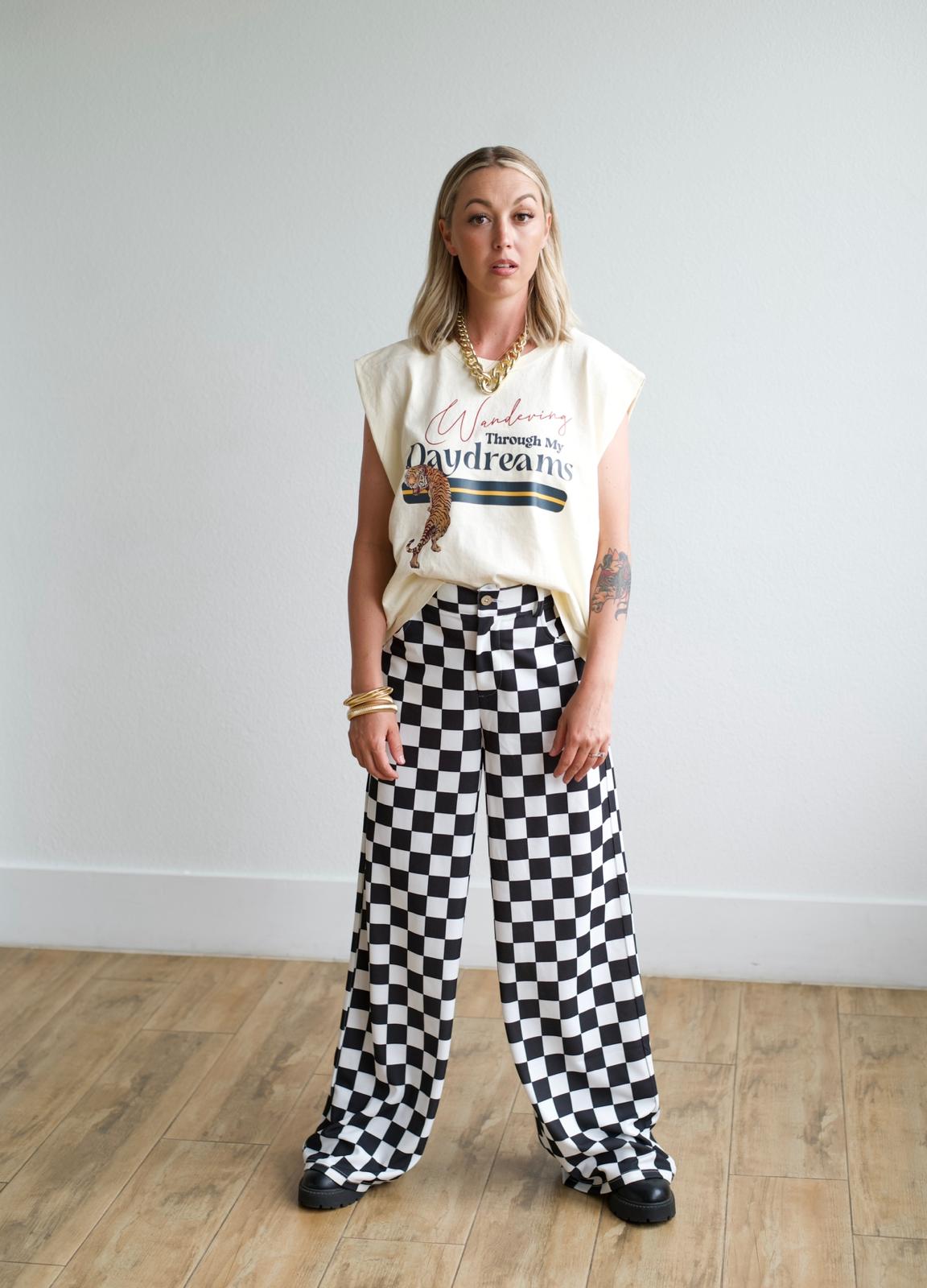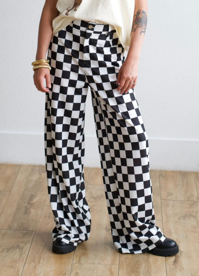 Bold yet effortless.These checkered trouser pants are your go-to for instant style with zero fuss. The soft, hip-stretch fabric moves with you, while the relaxed fit and flattering silhouette keep things comfortable all day. The elastic-back waistband adds ease, and the wooden button front gives it a polished finish. Black-and-white checkered print for standout style Elastic waistband in ba... read more