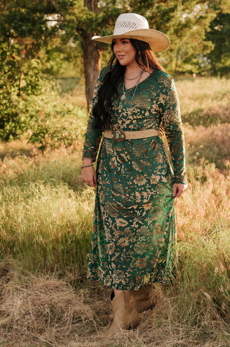 Soft drama, all eyes on you.This turquoise velvet burnout dress brings elegance with edge. The rich color and textured burnout detailing offer instant impact, while the soft, flattering silhouette keeps you comfortable from day to night. Whether you're heading to dinner or dressing up for a special event, this piece does the work—just add accessories. Intricate velvet burnout in a bold turquo... read more